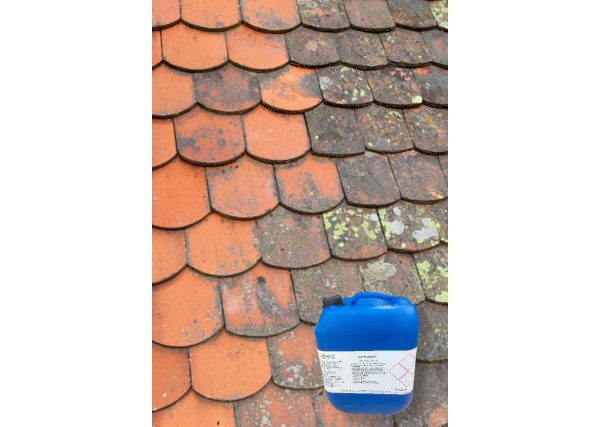 Nous appliquons un produit professionnel (fongicide, algicide) qui élimine les racines incrustées dans le support. Ce traitement en profondeur assainit la toiture et stoppe la prolifération des végétaux.